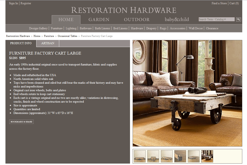 We wanted the real deal so we got the real deal. As in, we had some dudes in South Dakota train us over a real industrial cart. It was massive, had 90 years of wear and tear (and dirt and grime), and weighed in at over 200 pounds (for real, 236). You could get a splinter just thinking about it how rough it was. But you can already tell, it's pretty sweet.