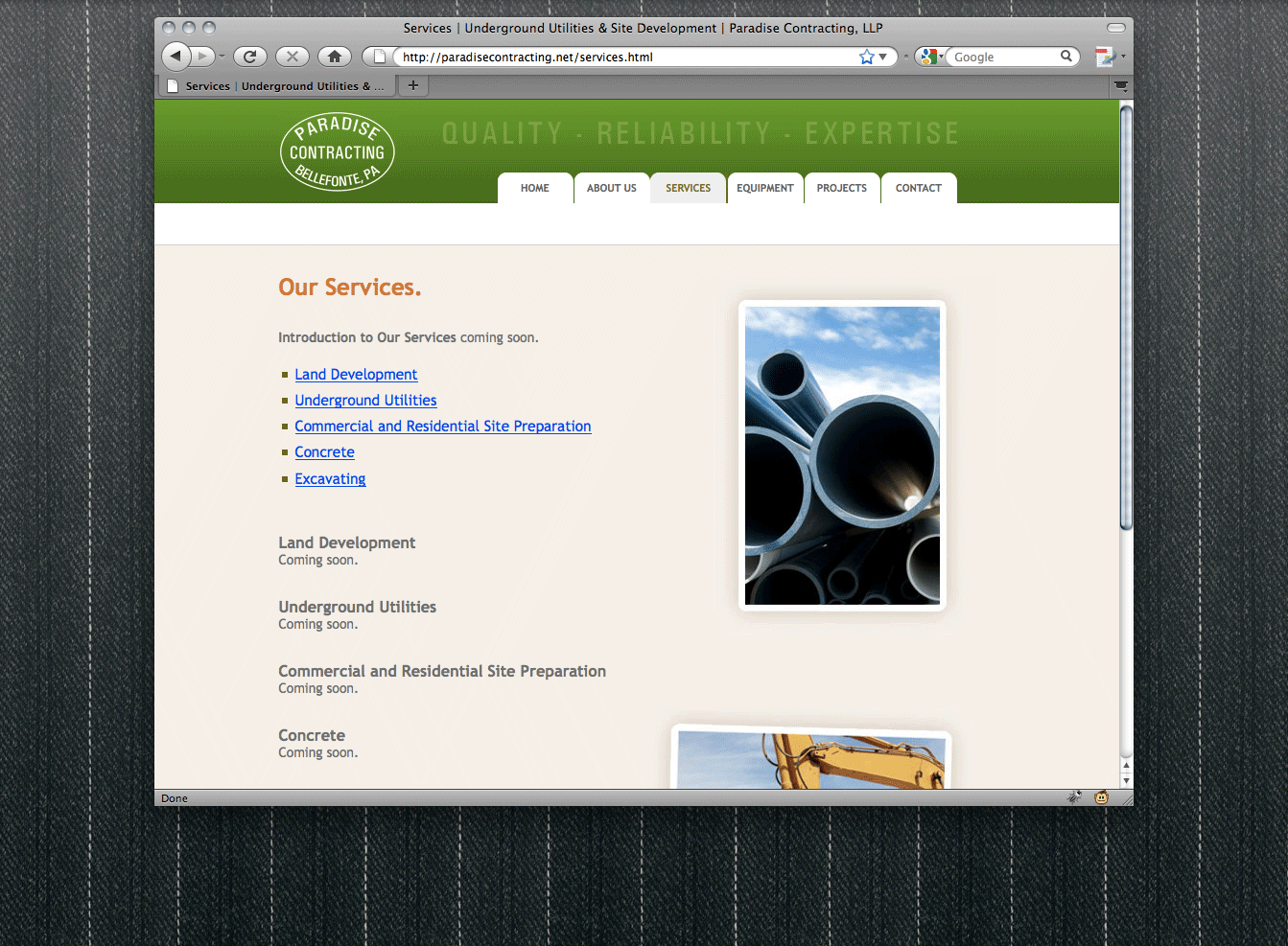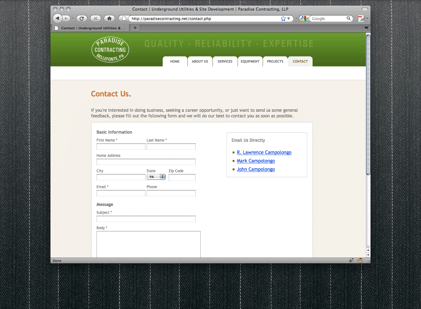 About: Small utility company needed a brochure website to improve their visibility in search engines and local service listings with the ability to accept inquires via a user-friendly web form. (HTML/CSS/PHP)